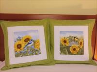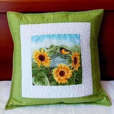 Bavlnená voľne quiltovaná návliečka na vankúš s textilným obrázkom zhotovená z kvalitných bavlnených látok. Vhodné na vankúše veľkosti 40 x 40 cm. Možno prať na 30 °C. Zapínanie na zadnej strane formou prekladu látok.